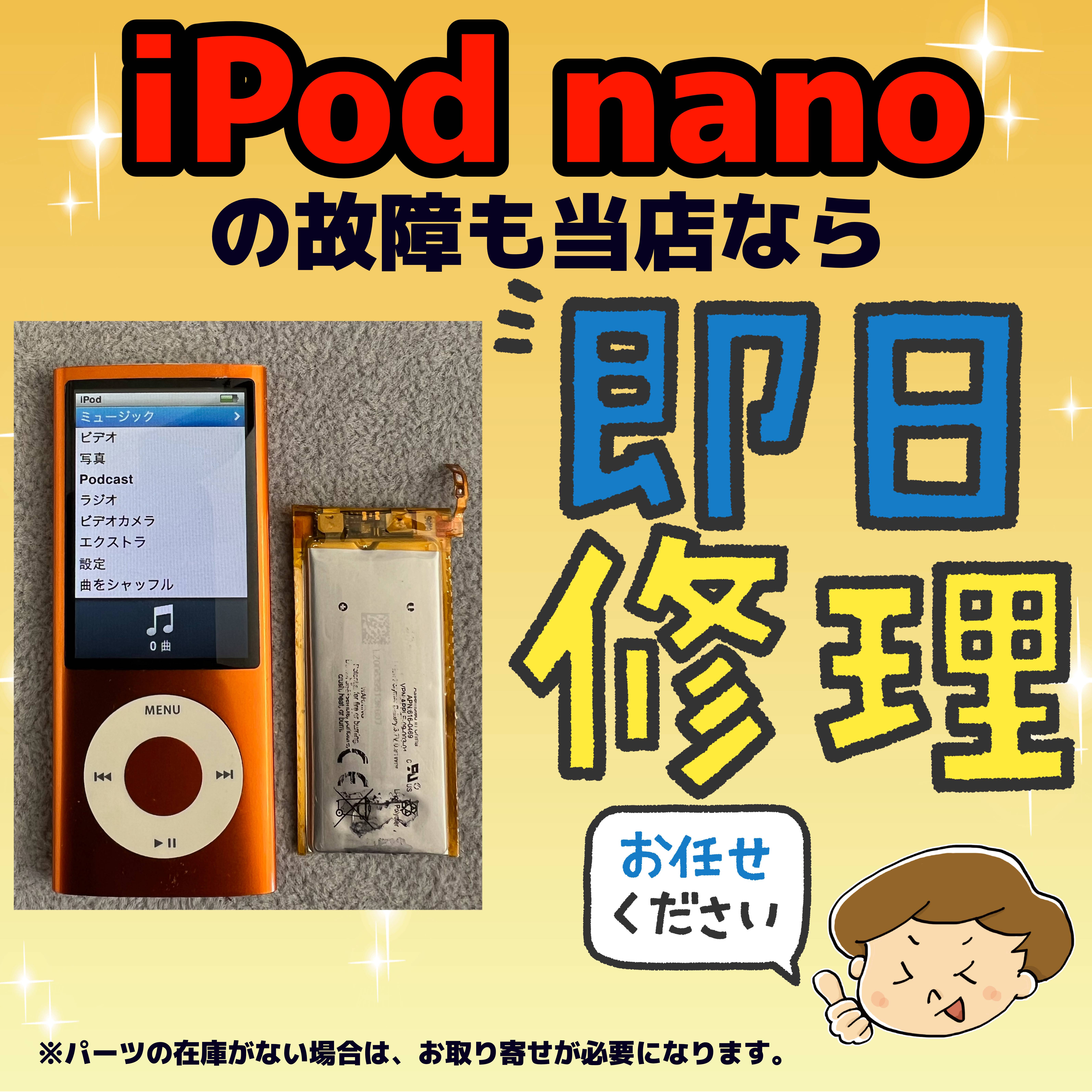 当店なら当日修理が難しい、iPod nanoのバッテリー劣化などの症状でも、即日修理対応可能! 今すぐご連絡ください! 078-915-8414 無料駐車場あります。 http://iplant.co.jp